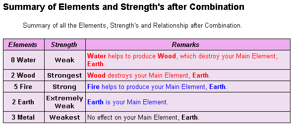 11. Determining a person's element strength is extremely important as a weak earth is different from a strong earth. In our reports, we go all out to provide all the necessary analysis to determine this as we understand the importance and impact of having determined the correct element strength.