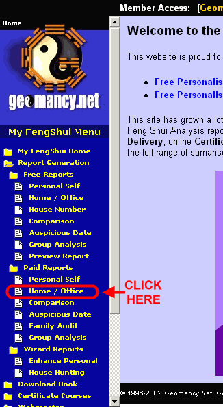 - Click on the Home / Office link, which opens up a Report Wizard on the right frame.