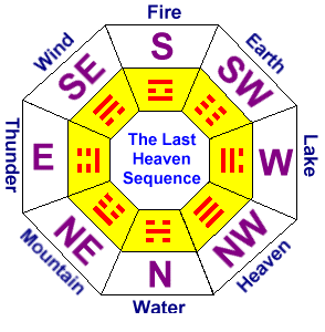 On the other hand, "The Later Heaven Sequence" is being used for Feng Shui assessment as it reflects the real life and also on the compass of Chinese seafarers. For example: